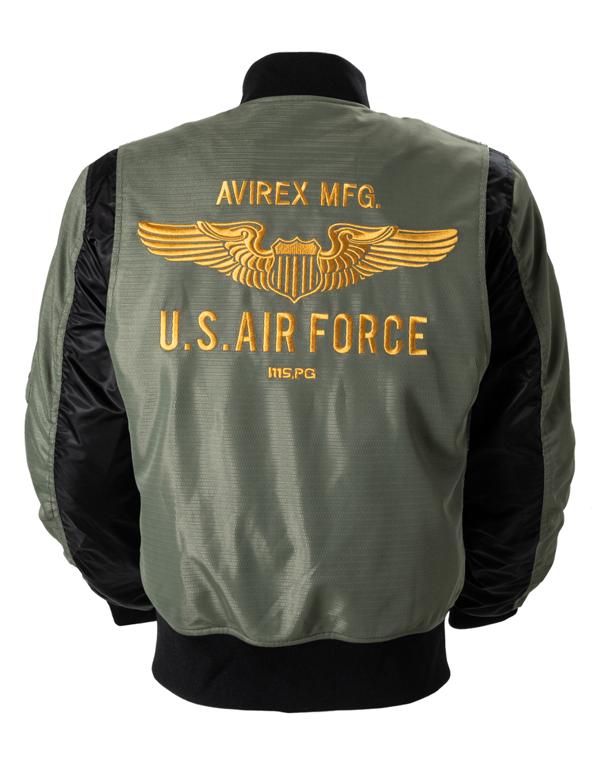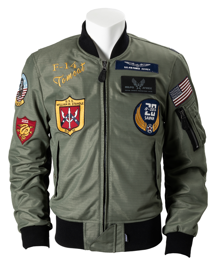 MA-1 AIR MC JACをベースにミリタリーグラフィックを大胆に配したトップガンモデル。