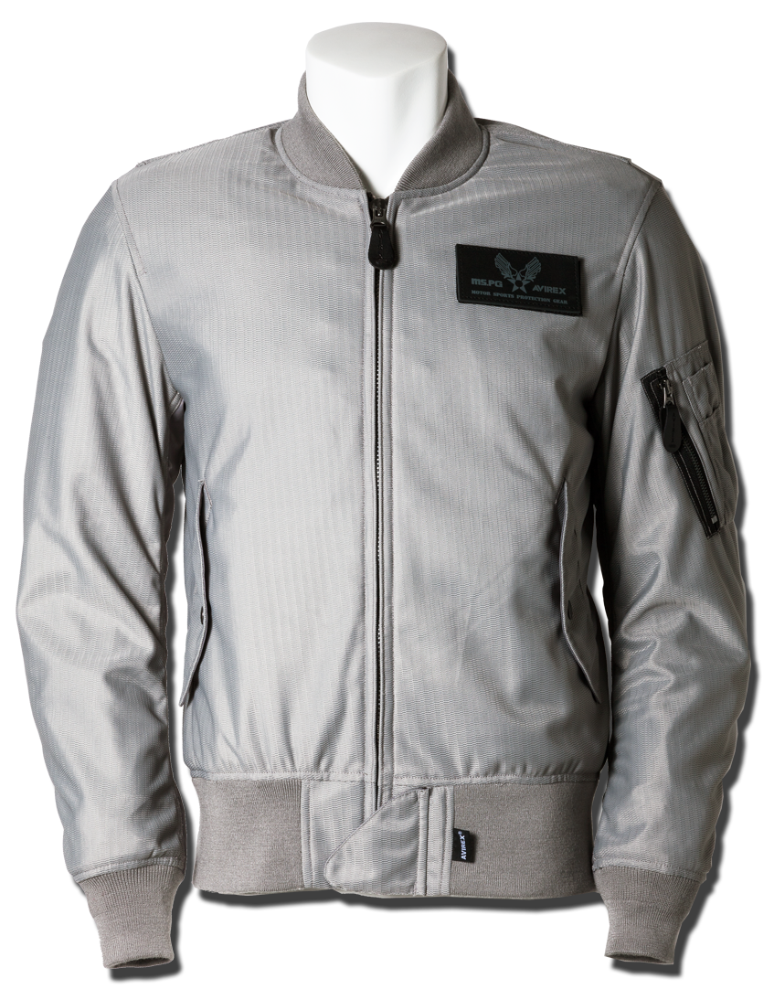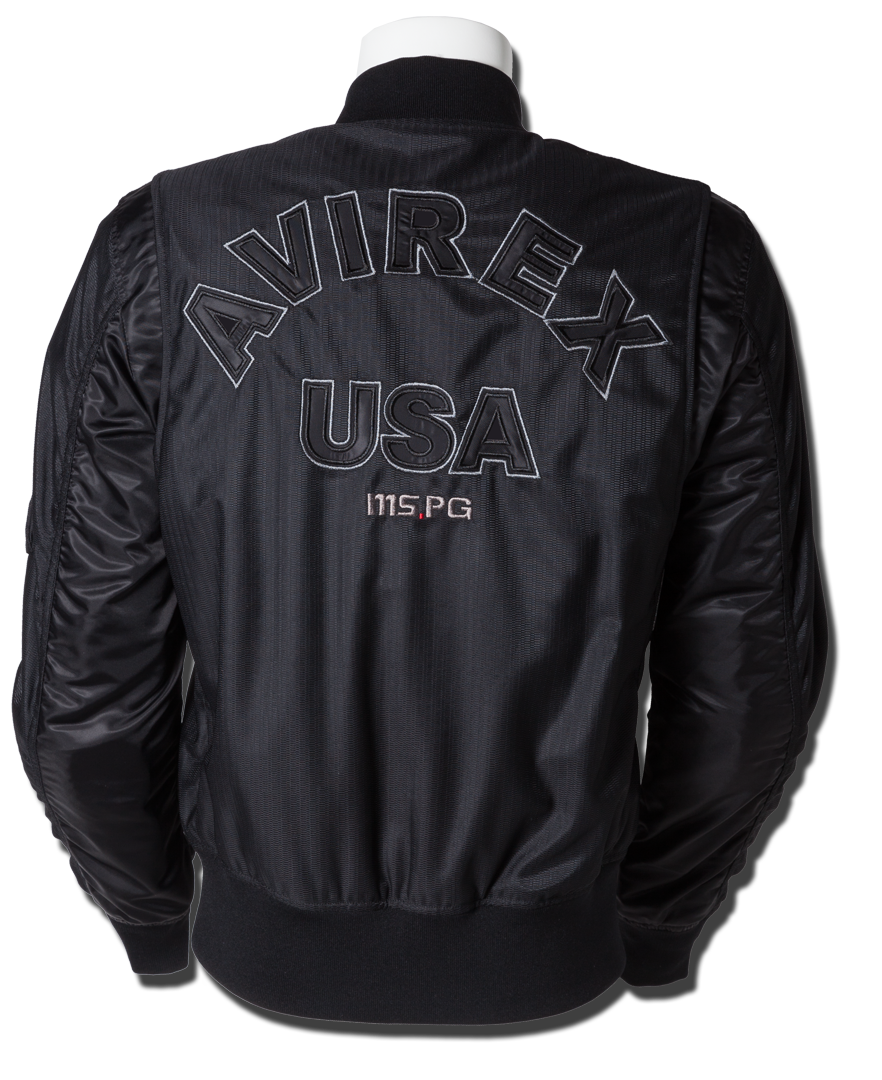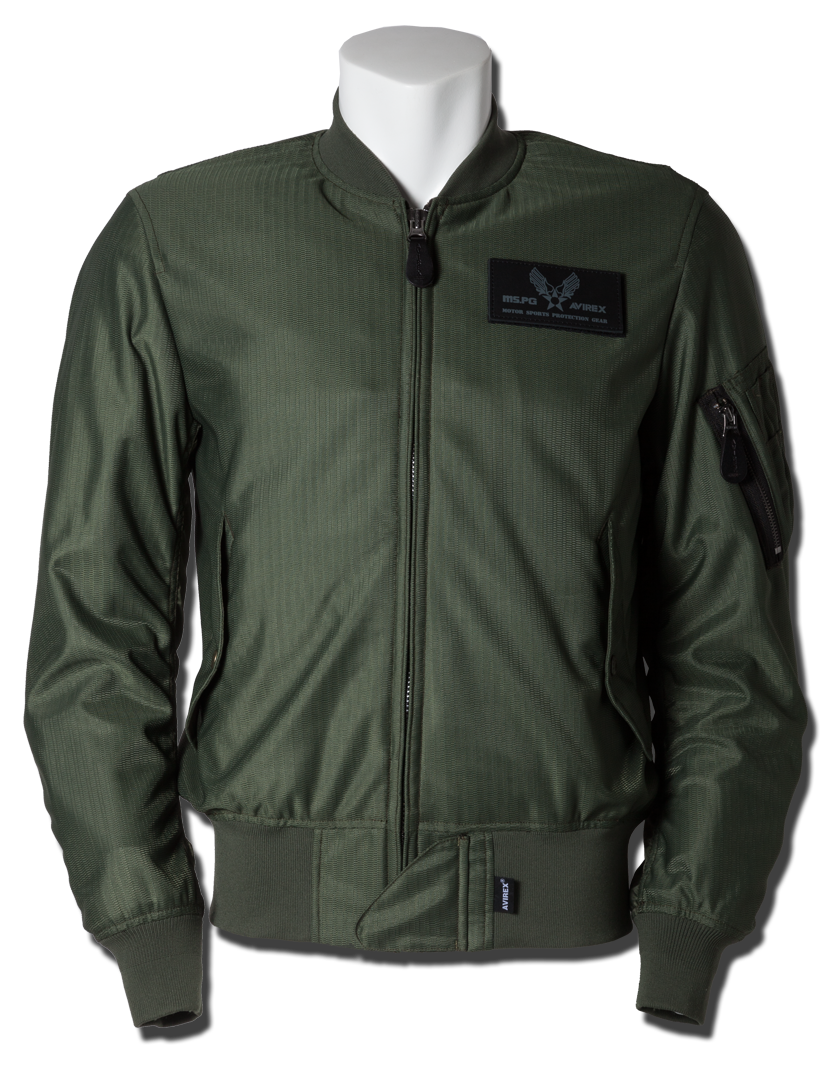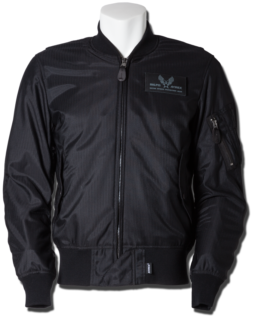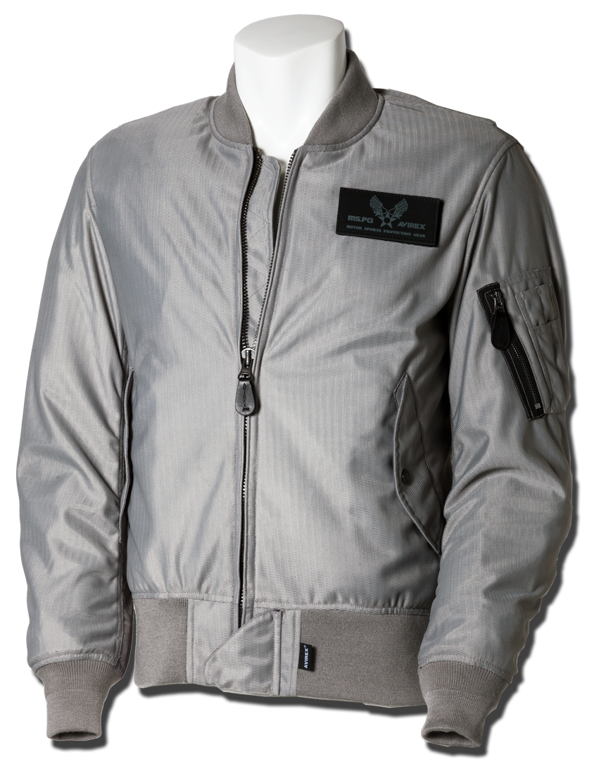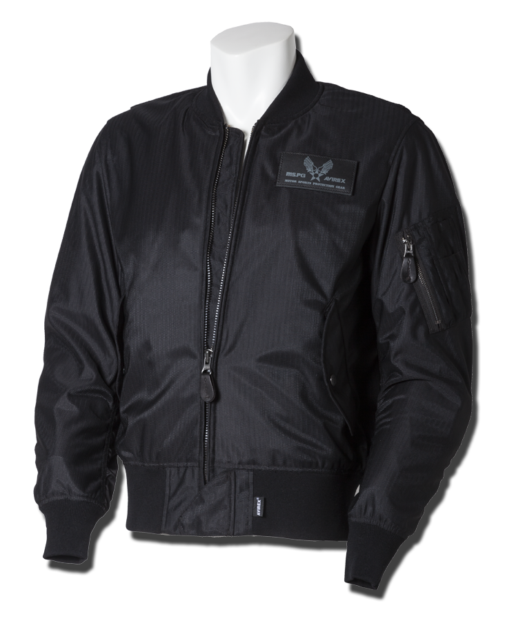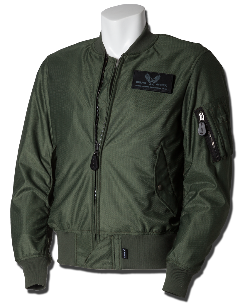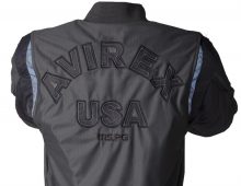 衣服内の風の通り道を確保するWIND PATH SYSTEM LINING仕様はそのままに、フロントファスナーカバー仕様、ライディング時の腕の前振りに合わせたアクションプリーツ仕様、そしてAVIREXのレザーパッチド刺繍グラフィック等新たな進化を遂げました。