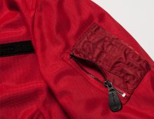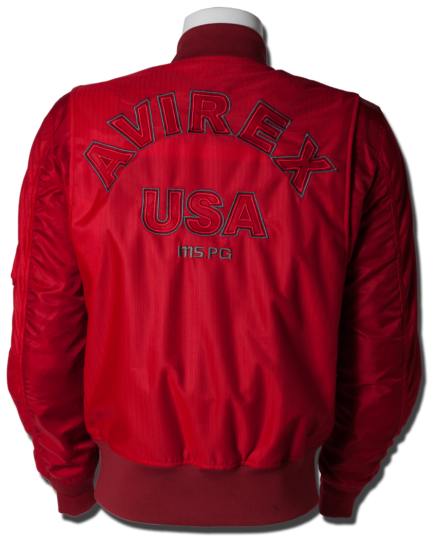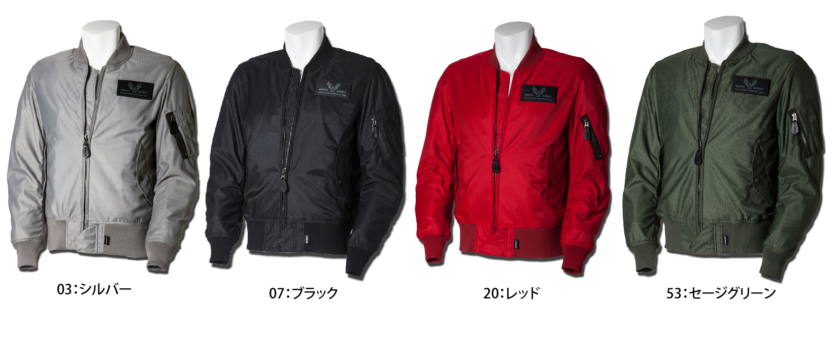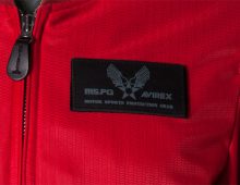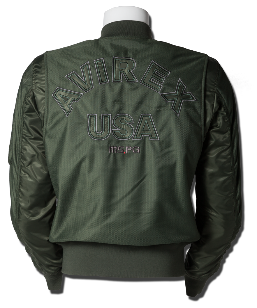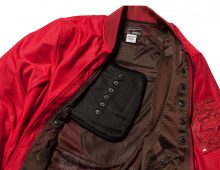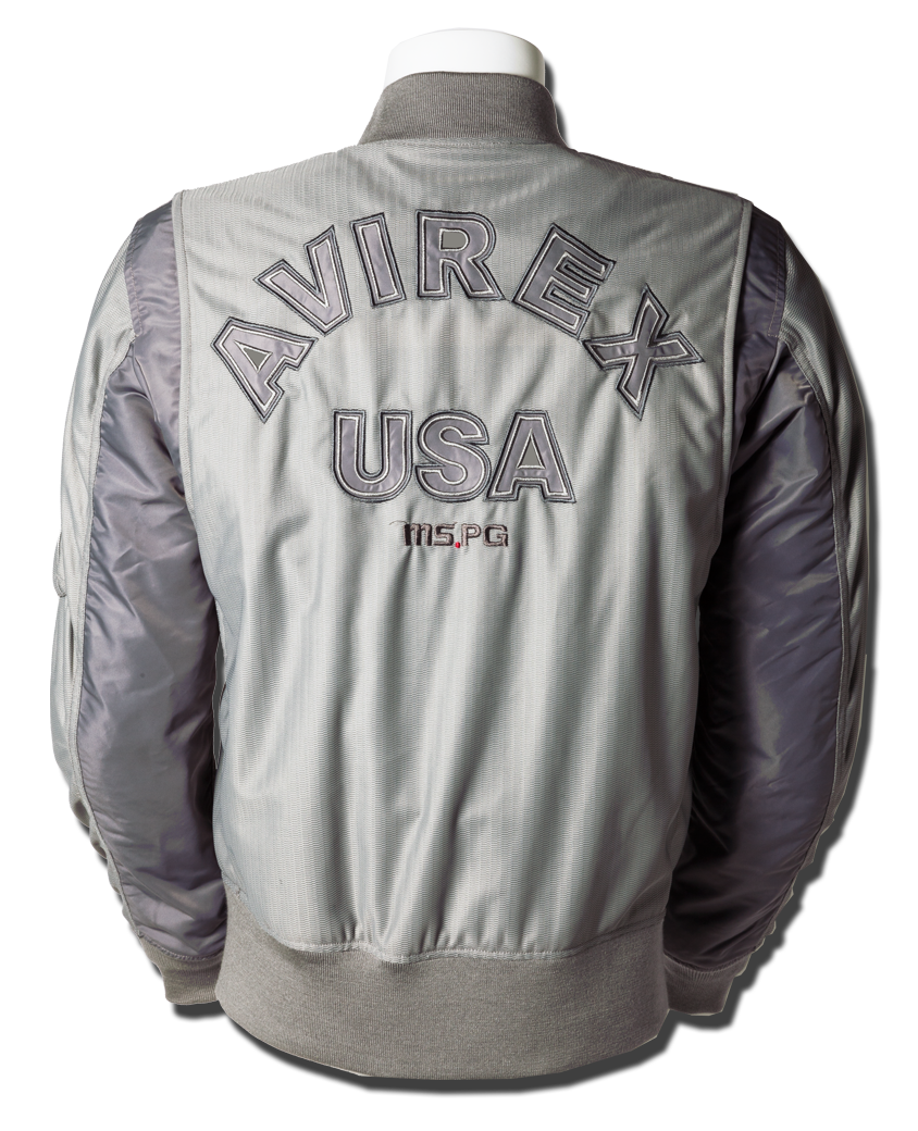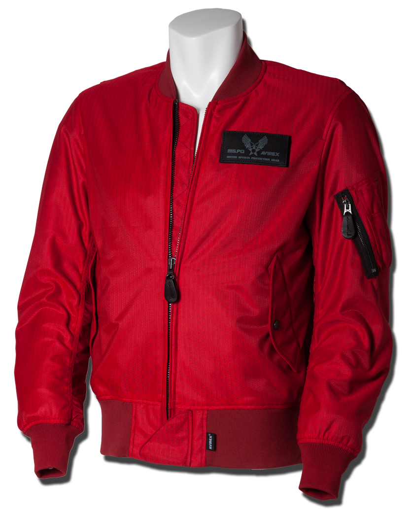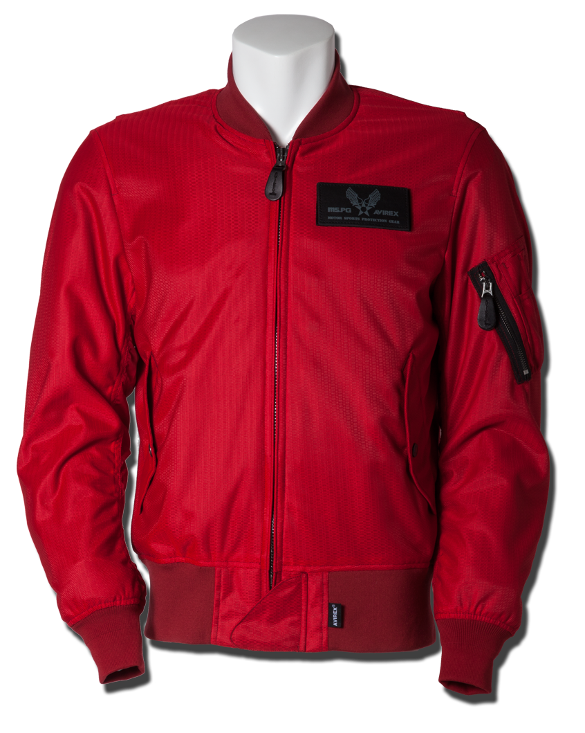 衣服内の風の通り道を確保するWIND PATH SYSTEM LINING仕様はそのままに、フロントファスナーカバー仕様、ライディング時の腕の前振りに合わせたアクションプリーツ仕様、そしてAVIREXのレザーパッチド刺繍グラフィック等新たな進化を遂げました。