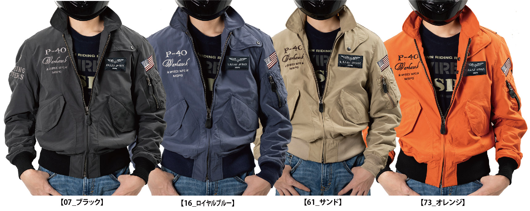 空、海、海兵、陸の米4軍でも使用されているフライトジャケットCWU-36Pをベースに、着用