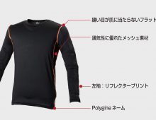 夏場のメッシュジャケットの肌へのベタ付きを押さえクーリング効果をもたらすcoolcore(クールコア)を使用した