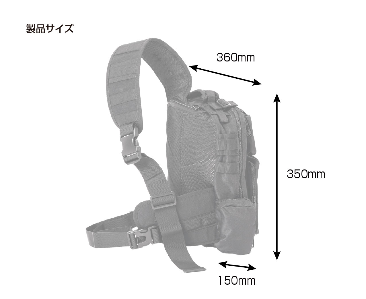 確保。外側のバンド(*MOLLE装備)にアクセサリーを取り付けてカスタマイズすることも可能です。