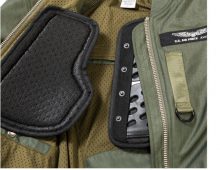 狭い軍用機内で様々な機材や機器に引っ掛かりの無いように極めてシンプルなデザイン。フライトジャケット特有の重量感を軽減し、ダブつきも無くしたライダーのための着心地良いジャケットに仕上がっています。