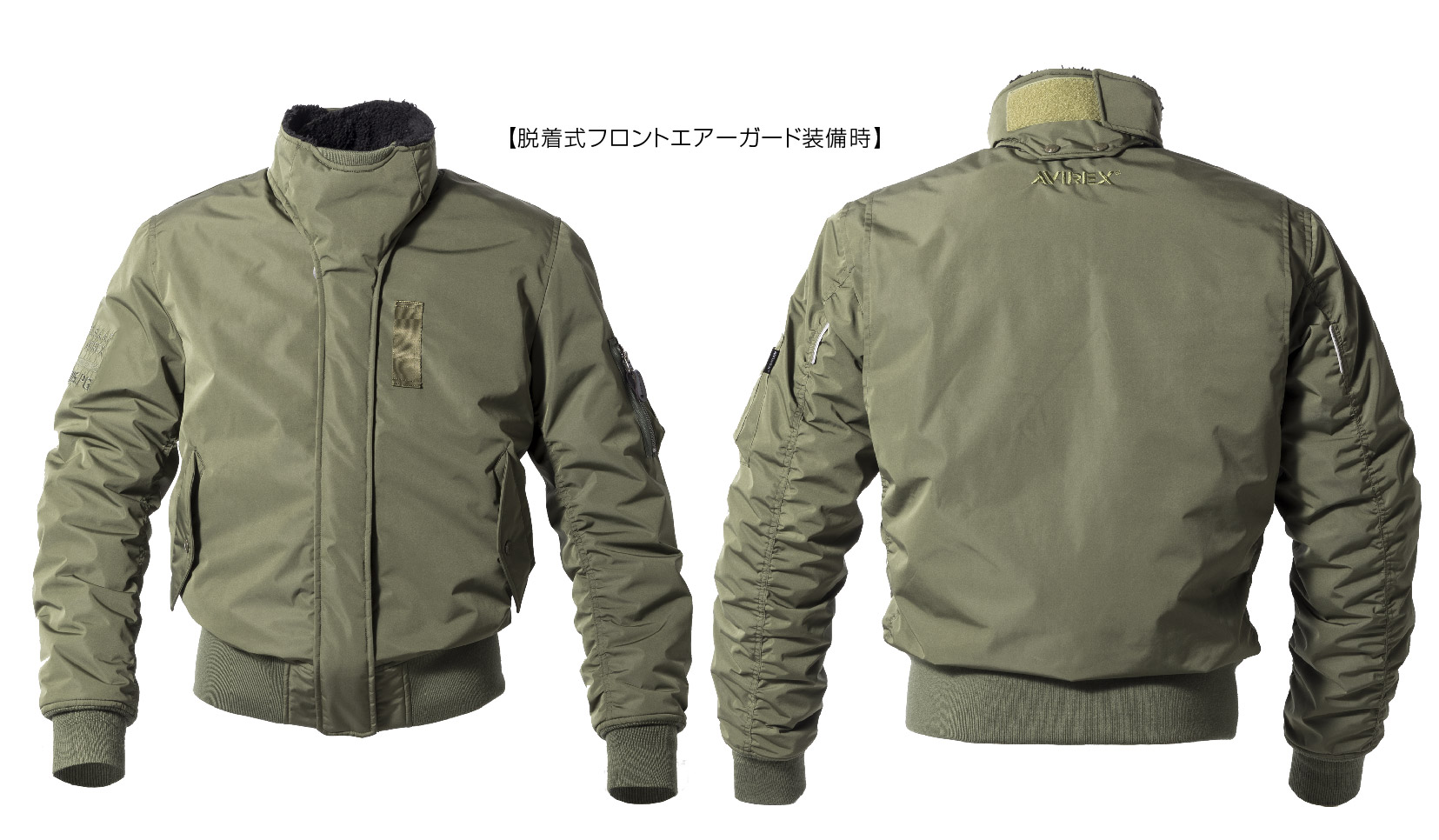 アクティブなシーンでの快適さを追求した設計により、寒さや不快感を気にせずにライディングを楽しむことができます。 AVIREXの伝説的なスタイルは、そのままに、現代のライダーに向けた機能性を兼ね備えています。ミリタリーテイストを感じさせるデザインで、脱着式フロントエアガードを装着することで、より防風性を確保し寒い日のライディングも快適。